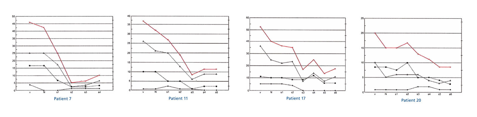 отражено в диаграммах 20 пациентов, участвовавших в исследовании.